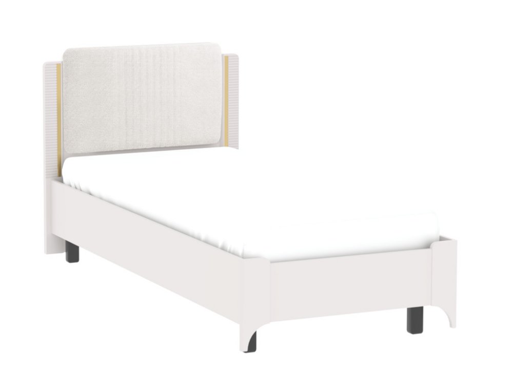 Кровать дополнена мягкой спинкой, выполнена в однотонной обивочной ткани (велюр).